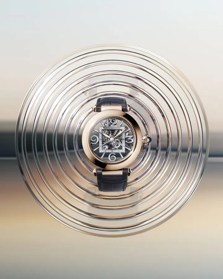 在Pasha镂空腕表中,卡地亚(Cartier)将标志性机芯与阿拉伯数字时标巧妙结合。方形分钟轨搭配圆形表壳,圆中带方的造型赋予腕表强烈的个性魅力。这款玫瑰金腕表采用醒目的装饰元素,散发优雅气质。搭载的9624 MC型镂空机芯饰以灰色漆艺,更加凸显出视觉上的深邃美感。