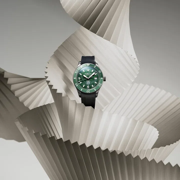 万宝龙以勃朗峰上冰海冰川(Mer de Glace)的震撼景象为灵感,推出全新万宝龙1858系列潜水腕表。作为品牌推出的1858系列首款运动潜水腕表,其迷人的远山绿色“冰川纹”表盘,特别采用古老工艺“gratté-boisé”手工刷制,最终呈现出逼真的冰川深邃感和光泽度。腕表采用双色陶瓷单向旋转表圈,表背激光镌刻立体图案,巍然立于海面的冰山以及于水下勇敢探索的潜水者栩栩如生。全新万宝龙1858系列潜水腕表 远山绿配备可自行替换的黑色V字形橡胶表带,为了更加贴合手腕,表带还配有可调节装置,令佩戴者可在腕上轻松调节表带松紧度。作为一枚专业的潜水时计,腕表通过了ISO 6425标准认证,防水深度达30巴(约300米),为热爱探索的父亲保驾护航。