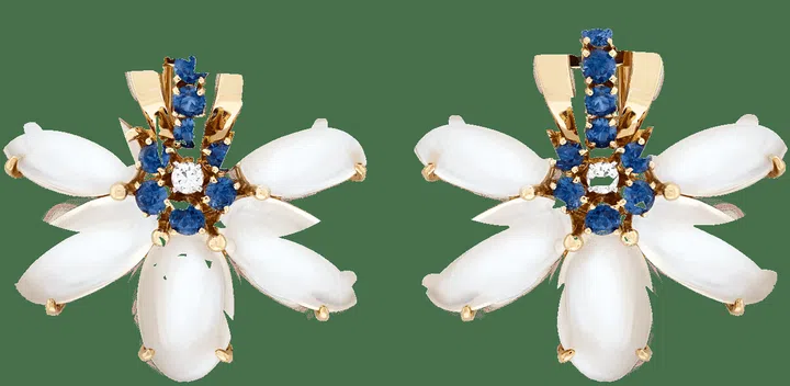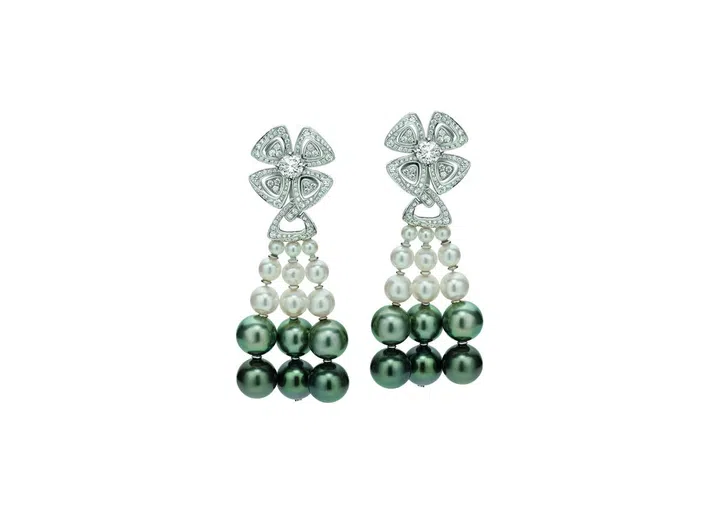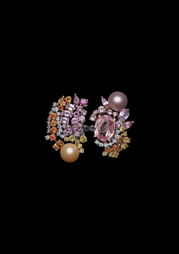 Wings of Light高级珠宝系列Blooming Flora主题耳环,18K白金镶嵌红色尖晶石、粉色蓝宝石、粉色尖晶石、钻石、Akoya白色珍珠和粉色淡水珍珠/Piaget。
