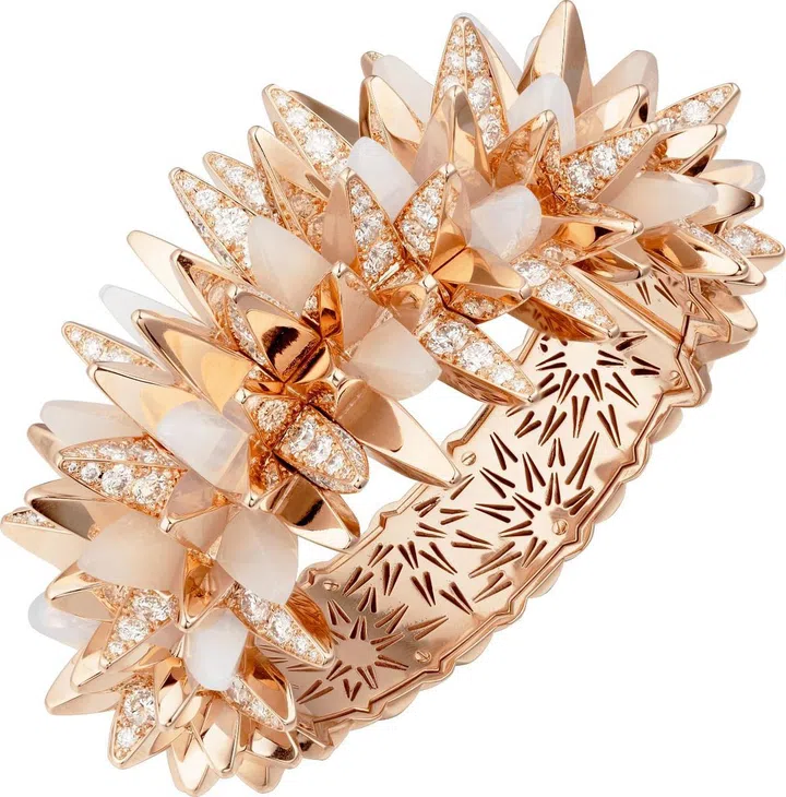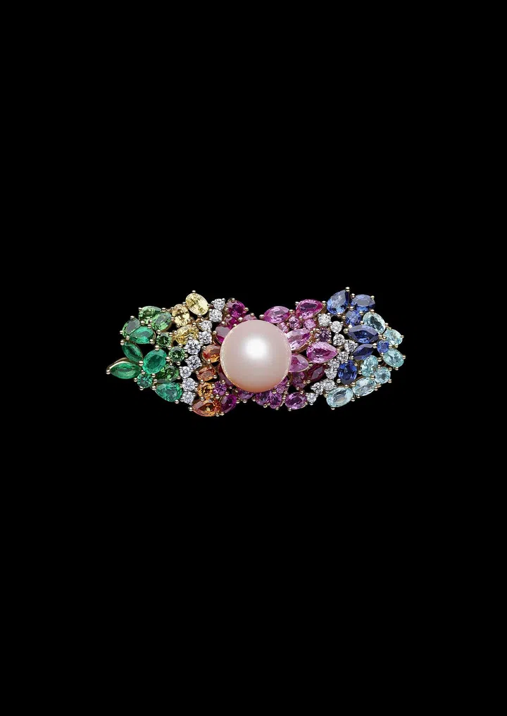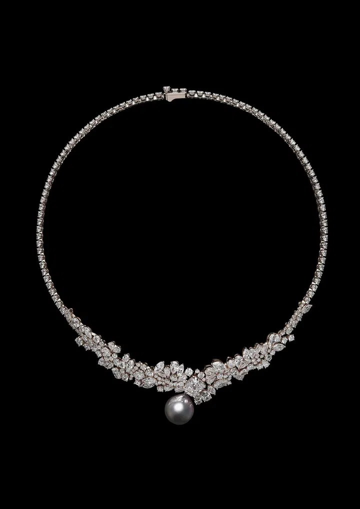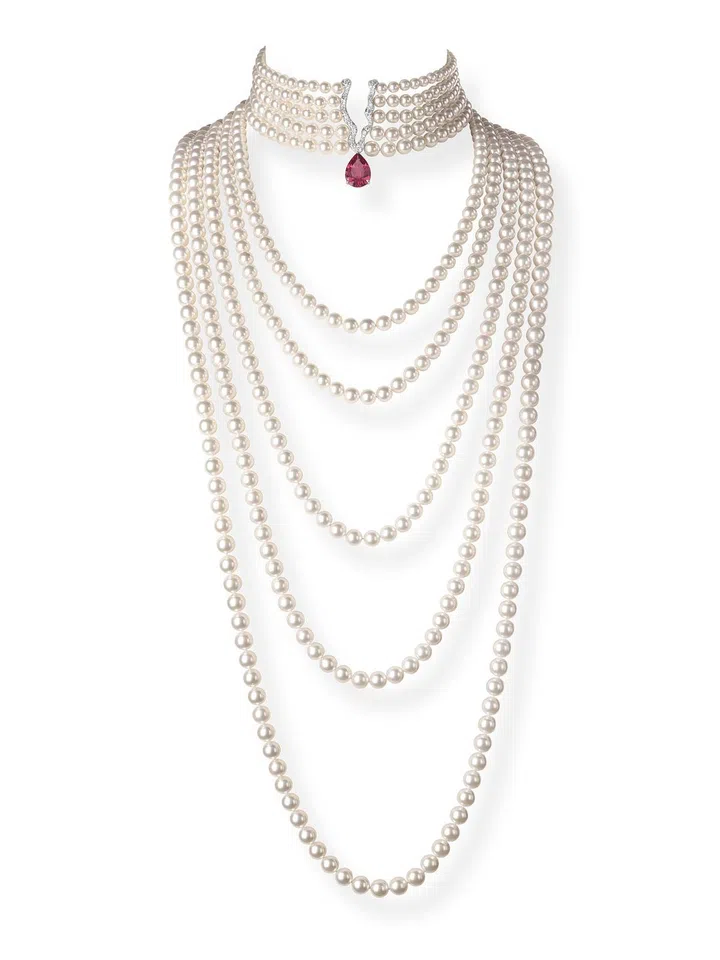 Wings of Light高级珠宝系列Blooming Flora主题可转换式项链,18K白金镶嵌红色尖晶石、粉色蓝宝石、钻石、Akoya白色珍珠和粉色淡水珍珠/Piaget。