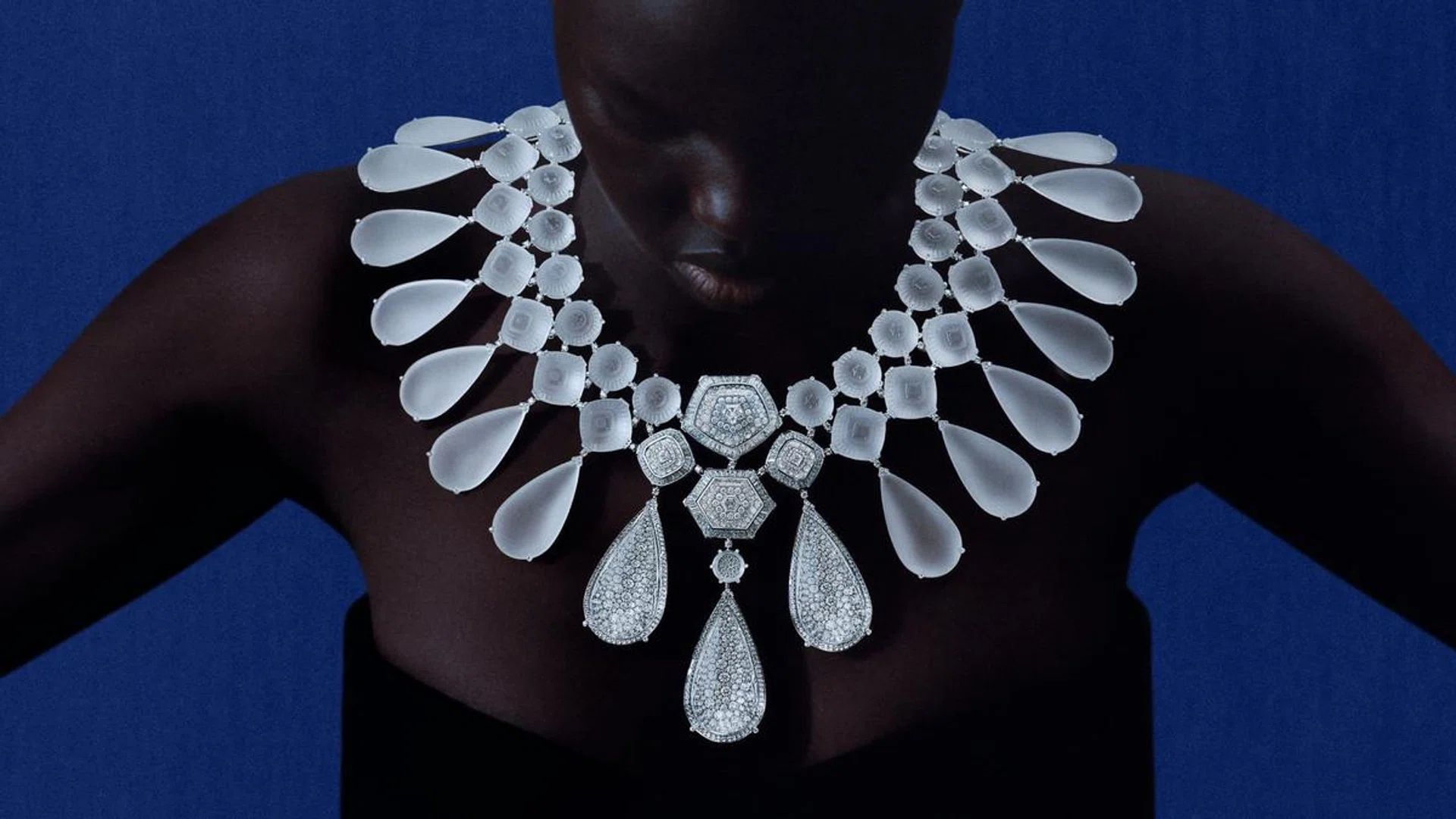 Carte Blanche, Or Bleu高级珠宝系列怎能缺少一抹蓝色? 品牌创意总监Claire Choisne从冰岛的蓝色冰川采撷灵感,倾心呈献具有大胆几何造型的Cristaux项链。