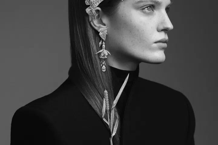 Helene强调,这一系列的突破,并不止于外观,更体现在工艺回归上。传统高级珠宝制作,历经时代变迁,金属结构日益厚重,为了牢固镶嵌钻石,往往牺牲了作品的轻盈与灵动。她直言:“当我们重新诠释这系列时,我们要求工匠回归最初那种仿佛随手采撷、恍若天成的自然之感。珠宝不应是一块冷冰冰的物件,而是像把花朵的呼吸,永远凝固于指尖。”