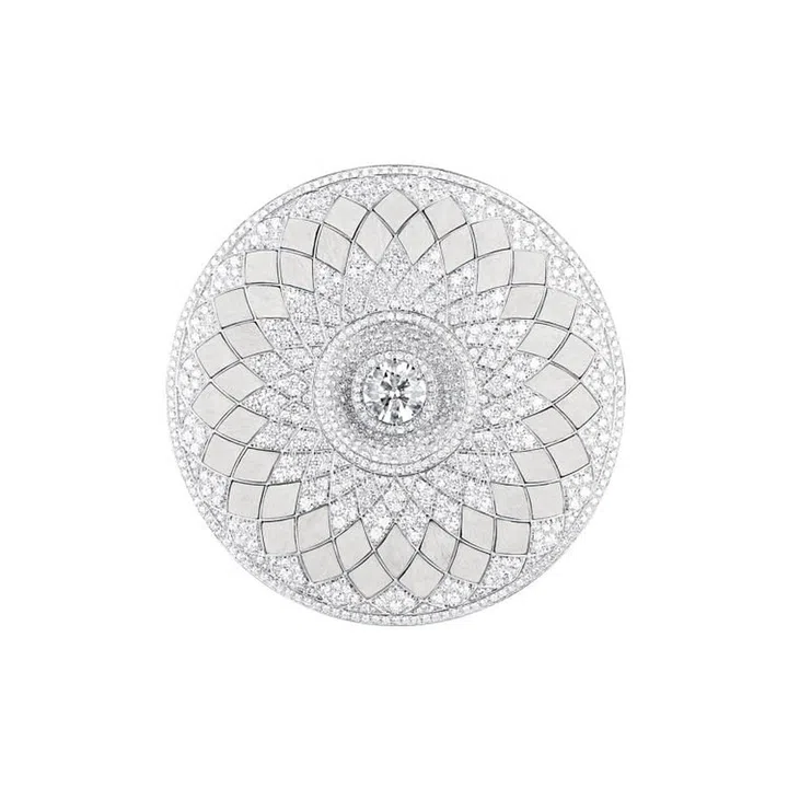 系列中的Flocon Imperial依照高级珠宝比例精雕细琢,刻画雪花的微妙细致。作品透过精致构造的完美对比,精心勾勒肉眼往往难以察看的细致雪花图案。