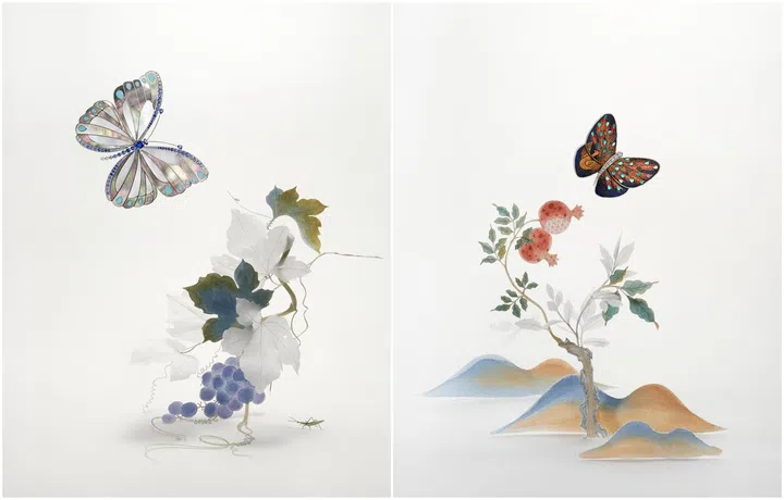 蝴蝶的灵动美态,一直给予梵克雅宝(Van Cleef & Arpels)丰富的创作灵感。此次,梵克雅宝将唯美的创意之笔给予韩国艺术家徐英姬(Younghee Suh),世家浩瀚的自然与灵巧的动物在其笔下再现魔力。徐英姬为梵克雅宝Butterflies系列胸针拍摄创意大片,将作品柔美诗意、高雅及细腻的格调再现。她将韩纸、布料和素描完美融合,描绘出诗情画意,仿佛身临其境,诗意盎然。