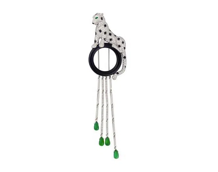 早在19世纪,豹皮就因其精美的花纹被用于室内装饰,美国室内设计师Elsie de Wolfe率先尝试以兽皮来打造拥有异国情调的室内设计。卡地亚(Cartier) 的设计师受此启发,以交错镶嵌的缟玛瑙和钻石来模仿豹纹,于是便有了1914年的第一枚豹纹图案的腕表。对豹形情有独锺的珠宝总监贞杜桑(Jeanne Toussaint)将美洲豹的形象演绎得淋漓尽致,在当时即掀起“豹时尚”。自此,美洲豹丰富多姿的野性魅力在卡地亚各个作品系列中尽情展现,时而勇猛俏皮,时而从容闲适,令人为之着迷。