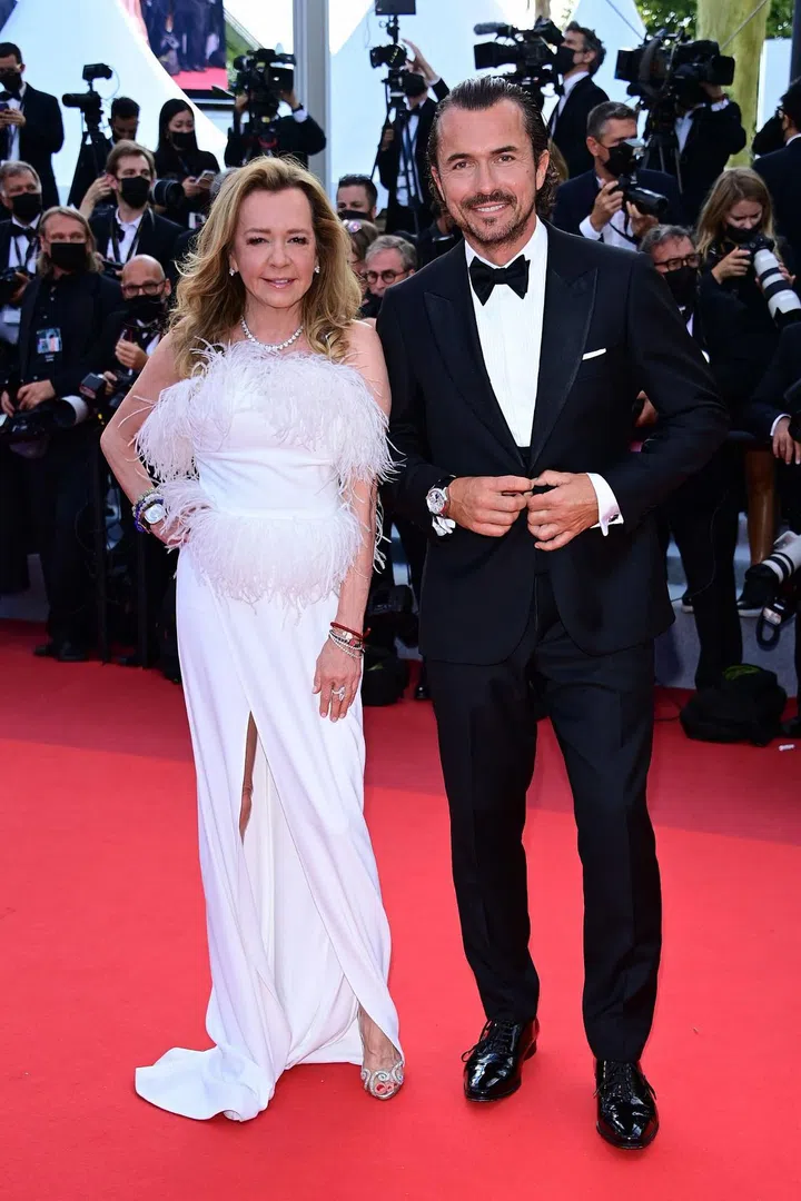 萧邦联合总裁兼艺术总监Caroline Scheufele 佩戴Haute Joaillerie系列心形钻石项链及钻石耳环; 法国演员William Abadie佩戴L.U.C Perpetual Chrono 18K白金腕表。