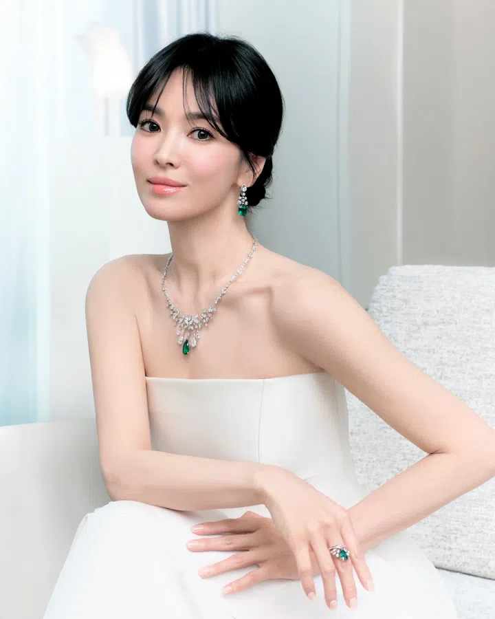 身为尚美巴黎(Chaumet)品牌大使的宋慧乔以两套优雅造型亮相品牌于首尔举办的高级珠宝活动。第一套造型中,她选择佩戴Joséphine Soir de Fête黄钻项链搭配同系列钻石耳环以及戒指,举手投足间展示女王般的庄严与自信优雅。另一套造型中,她换上以祖母绿为主角的 Joséphine Soir de Fête项链,搭配Joséphine Aigrette Imperiale祖母绿戒指和Souveraine de Chaumet祖母绿耳环。