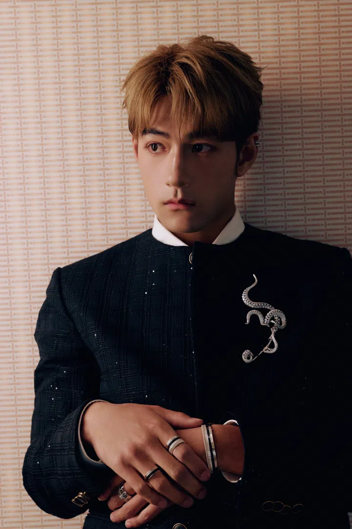 香港新一代男神邱彥筒出席第43届香港电影金像奖时,将宝诗龙(Boucheron)Carte Blanche, Ailleurs高级珠宝系列Poulpe耳环当作胸针佩戴,为造型增添时尚趣味,再搭配Quatre Black Edition 白金镶嵌钻石和黑色PVD大号款手镯、戒指和Quatre Black Edition白金镶嵌钻石和黑色PVD耳环。