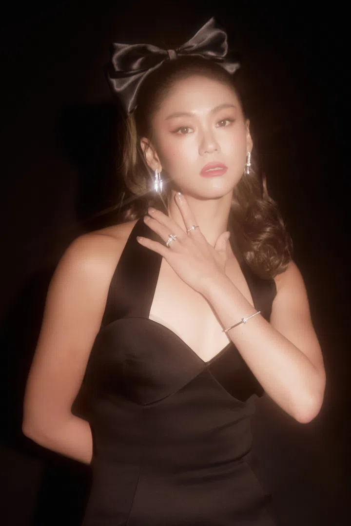 韩国歌手崔秀彬(Soobin)佩戴尚美巴黎Bee de Chaumet系列白金项链,以及玫瑰金耳环与戒指,帅气亮相品牌位于乐天世界塔的快闪展览。