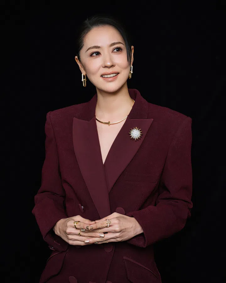 入围第60届金钟奖“迷你剧集(电视电影)女配角奖”的睦媄以一袭浪漫透纱礼服亮相,搭配蒂芙尼Bird on a Rock石上鸟系列戒指,并以Sixteen Stone耳环及手环点缀造型,流露高雅大方的女性魅力。