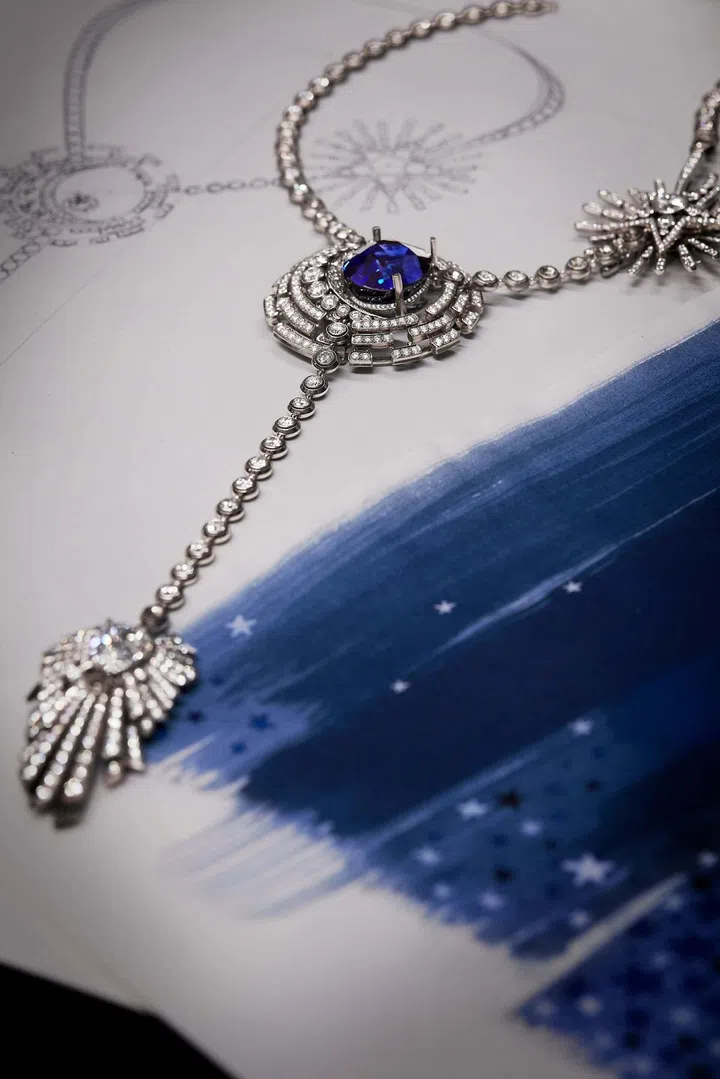 香奈儿推出1932高级珠宝系列,首度释出代表作Allure Celeste蓝宝石钻石项链,诠释蓝色地球、宇宙繁星、划过夜空的彗星,赞颂宇宙的神秘之美。