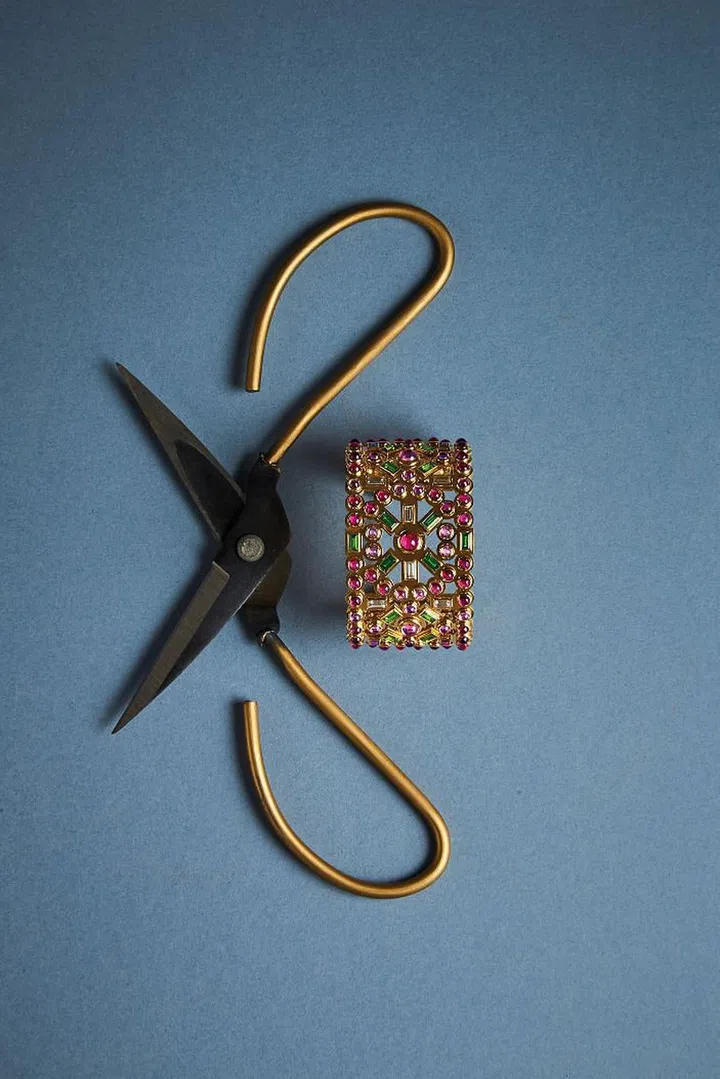 精表珠宝匠人精神高级珠宝之所以显得华丽娇贵,不仅因为材质珍贵,更因为蕴含其中的艺术工匠精神。秉持着工匠精神的香奈儿(Chanel)展现追求极致的美学理念,打造出一件件精美的珠宝艺术品。1 Nov 2021chanel, chanel high jewellery, jewelleryShare this articleText 张思嘉Art direction Chen JinghuaPhotography Phyllicia Wang1/5Roubachka项链,18K白金镶嵌钻石和养殖珍珠; Roubachka手镯,18K白金镶嵌钻石和养殖珍珠; Roubachka戒指,18K白金镶嵌钻石和养殖珍珠/Chanel。2/5Mysterieuse 戒指,白金镶嵌钻石与水晶,饰以黑漆; Mysterieuse项链,白金镶嵌钻石与水晶,饰以黑漆/Chanel。3/5Ganse Noire Spinelle项链,18K白金镶嵌缟玛瑙、尖晶石和钻石; Ganse Noire Spinelle手镯,18K白金镶嵌缟玛瑙、尖晶石和钻石/Chanel。4/5Persane手镯,黄金镶嵌粉红碧玺、沙弗莱石、红碧玺和钻石/Chanel。5/5Magnetique项链,黄金镶嵌水晶和钻石/Chanel。chanel, chanel high jewellery, jewelleryShare this article