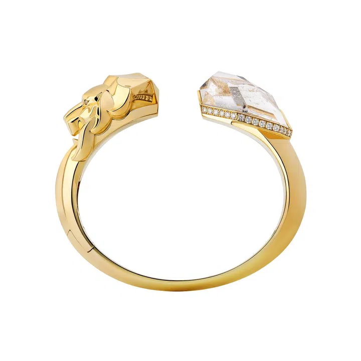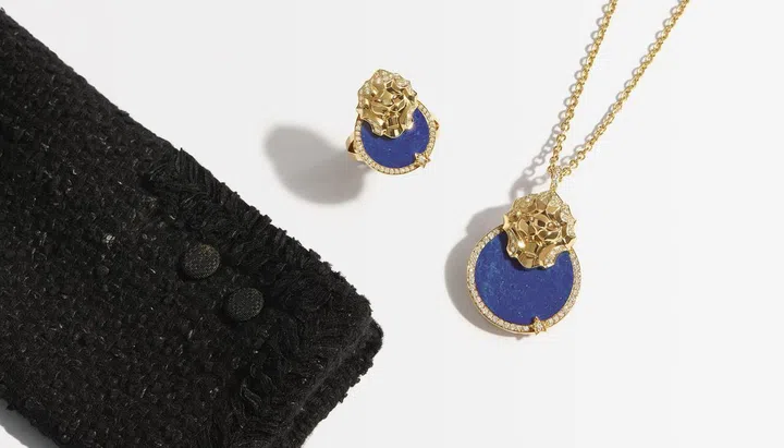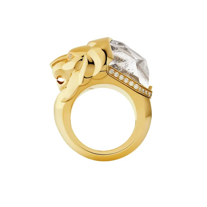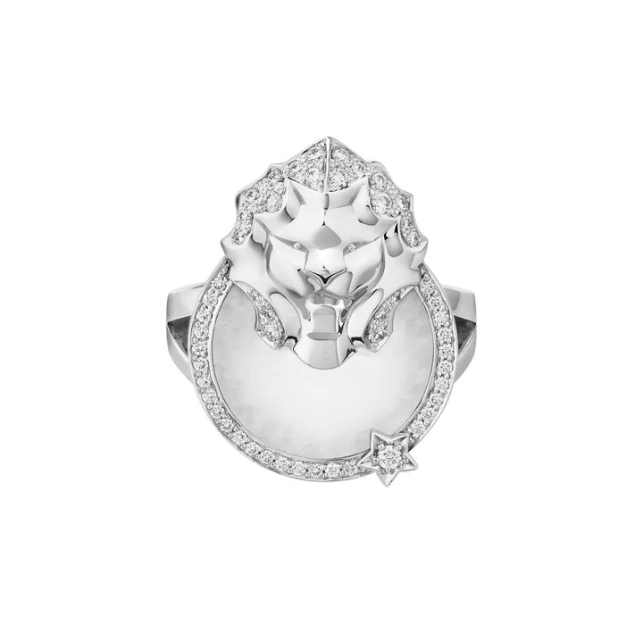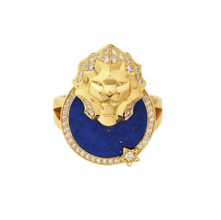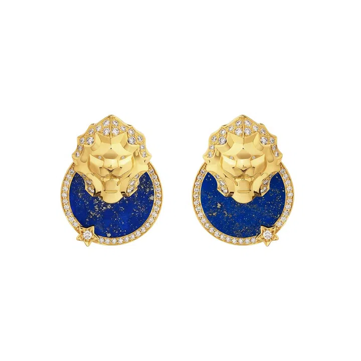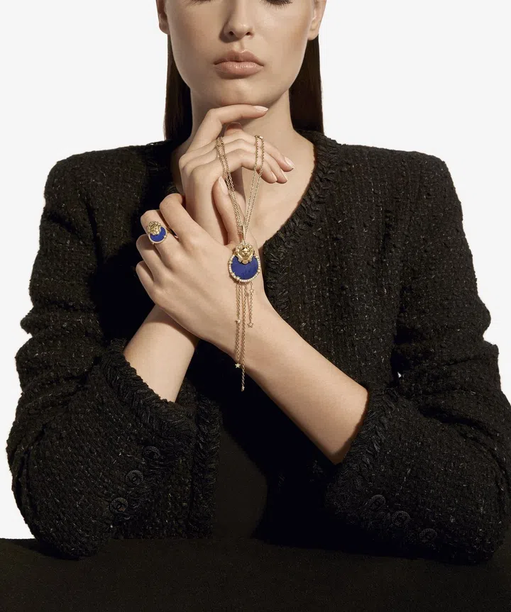 狮子是香奈儿(Chanel)永恒的主题之一,从巴黎到威尼斯,狮子都与Gabrielle Chanel如影随形。狮子不仅是她的星座,也是品牌美学宇宙中不可缺少的重要元素。狮子具有守护的魔力,也象征着复活的能量,代表了女性的强势,同时也展现着浪漫纯真。她喜欢将狮子融入设计之中,像是套装的纽扣装饰、手袋的扣环。自2013年起,香奈儿就将狮子融入珠宝作品中。今年,Sous Le Signe Du Lion系列又开启了全新篇章,带来八件以威尼斯雄狮为主题的作品,参照圣马可广场守护神的造型,用青金石、珍珠母贝、水晶打造巴洛克风格的珠宝。黄金象征着阳光,镶嵌钻石与青金石,金狮向阳,绽放璀璨耀眼的光泽。