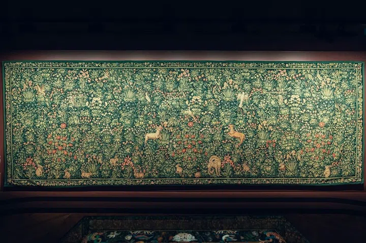品牌对约30件藏品进行修复工作,包括品牌的历史作品和博物馆出借的藏品,让具有百年历史的艺术臻品重现昔日荣光,当中包括意大利皮斯托亚博物馆(Pistoia Musei)出借的巨型Millefiori Tapestry繁花挂毯。首次在意大利境外展出,制作于16世纪、长12米的巨型挂毯由羊毛和丝绸制成,饰有极其繁复的植物和动物图案,作为展览的压轴大作登场。