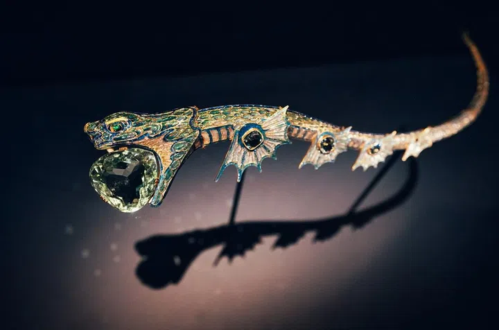 展品也不乏珍稀的古董珠宝,包括品牌于1807年制作的绣球花Hortense胸针、1847年的常春藤手镯、1830年的白色睡莲手镯、1850年的三色堇冠冕和1900年的海龙头饰等,展现了品牌历史悠久的自然主义珠宝创作历程。