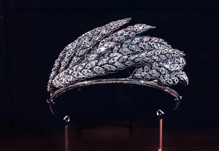 亮点展品有Chaumet品牌创始人马利-艾虔·尼铎(Marie-Etienne Nitot)创作的麦穗冠冕。与这顶充满代表性的冠冕一同展出的有拉乌尔·杜菲(Raoul Dufy)绘制的田野主题画作,以及一件由伊夫·圣罗兰(Yves Saint Laurent)设计、绣有玉米穗图案的外套,巧妙地将不同艺术家、不同品牌的同一主题藏品,设置于一个场景之中,展现出珠宝与艺术作品之间的丰富联系。
