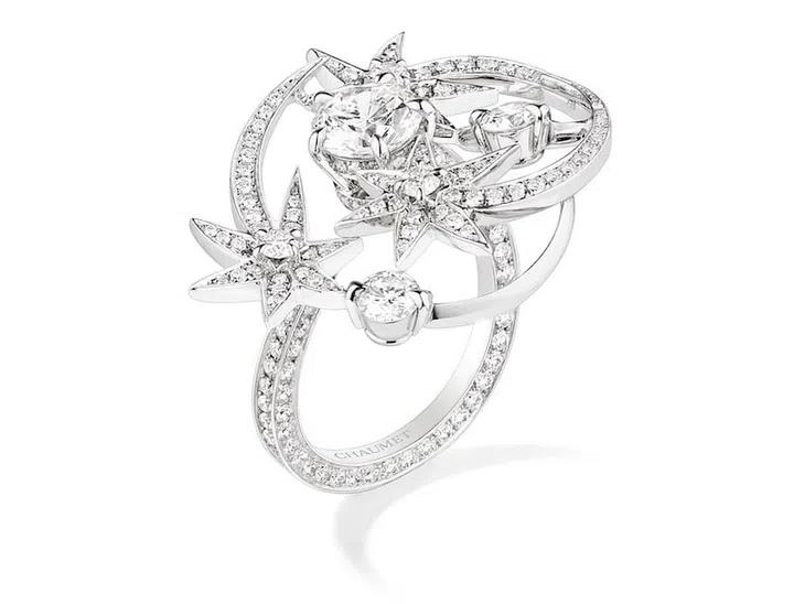 尚美巴黎(Chaumet)以“天穹皓境”(Les Ciels de Chaumet)作为年度高级珠宝系列的主题,将天空的颜色、表情、星辰和飞鸟融入设计中,精致且诗意。