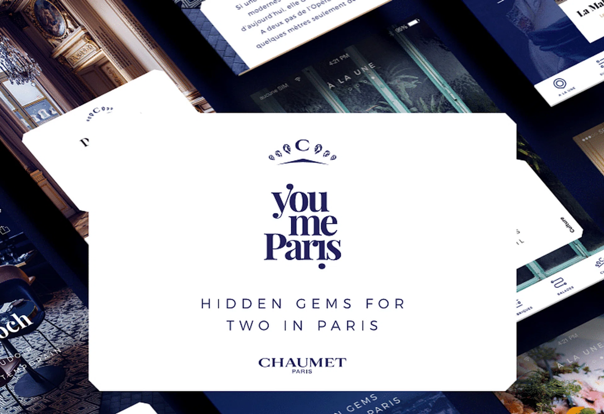 作为一个拥有237年悠久历史的巴黎品牌,Chaumet用老巴黎的眼光探索巴黎,所有推荐规划的景点与行程都是“情侣专属”(Only for Couple),这与品牌以爱情为创意灵感来源的有关。在美丽的塞纳河畔享受香槟与生蚝;享有双人私密的游泳池;在百年的图书馆内来次浪漫的烛光晚餐;踏着清晨的露珠造访巴黎最有人气的面包店;探寻米其林星级料理餐厅;入住古怪却高档时尚的精品酒店……Chaumet的这个App中包含5个秘密地点、7家古老酒店、12个文化景点、8个甄选商铺和6个主题徒步游览路线,内容丰富多样,能够让情侣感受最浪漫的巴黎。