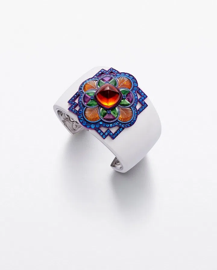 萧邦邦联合总裁兼艺术总监Caroline Scheufele从神话世界或现实中繁盛的大自然汲取灵感,诠释该系列的巴洛克幻想风情。那里水草丰茂,宛如伊甸园,宝石如浆果一般触手可及,动植物们展现迷人魅力,歌声动听。就像是潘泰莱里亚岛(Pantelleria),那里仿佛地球上神秘的角落,高耸的火山岩倒映在澄澈透明的水面上,Caroline Scheufele久久注视着水面,目不转睛;或是像电影《阿凡达》中构思的瑰奇自然,那里充满隐喻,仿佛世外桃源,远离现实的纷扰,令人重获新生。
