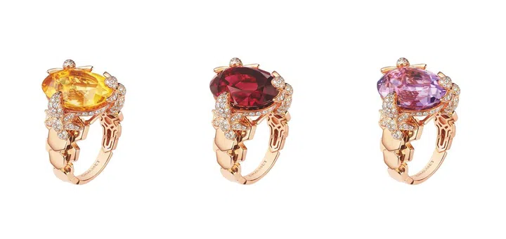 作为拿破仑和约瑟芬的珠宝提供商,尚美巴黎(Chaumet)与Bee My Love合作,从蜂房上汲取灵感,推出了对作为皇家标志的蜜蜂的现代演绎,即几何图案的金饰。尚美巴黎这一代表性的产品系列此次加入了新的鸡尾酒戒指,色彩十分亮眼,让你在派对上轻而易举吸引众人目光。