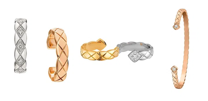 堪称香奈儿(Chanel)最亲民的Coco Crush珠宝系列,2015年一推出便掀起沸腾话题。该系列以经典菱格纹图腾为灵感,不仅保留了品牌优雅特质,更增添了新鲜趣味。系列今年再添新作,其中包括玩味十足、设计时尚新颖的“ S” 形双指戒。戒指由镶钻黄金“C”及镶钻白金“C”衔接而成,“S”的两端还展示了新元素——就是让单一菱格成为设计重点。