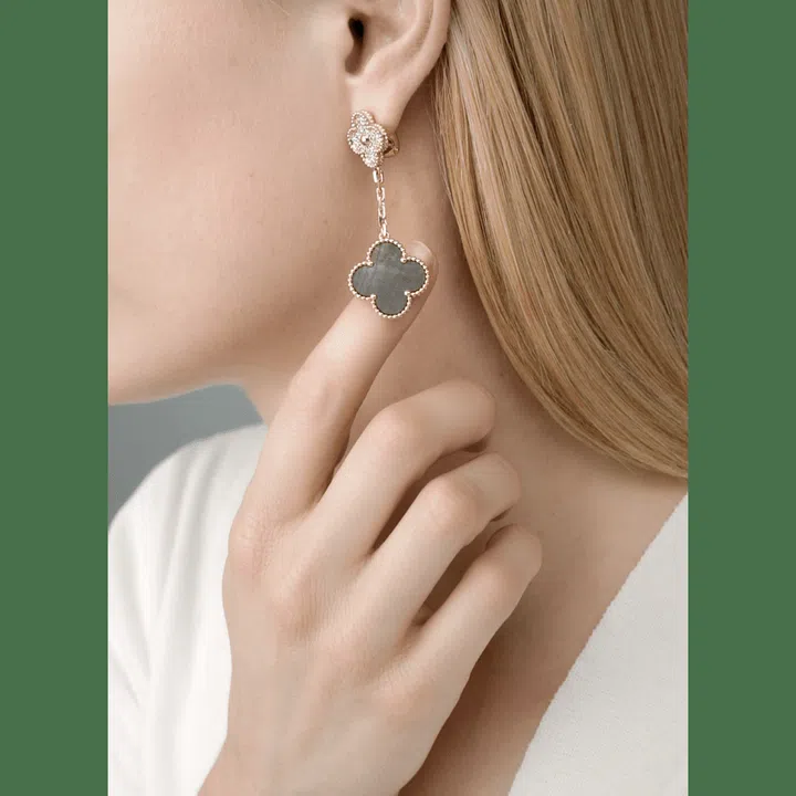 1968年,梵克雅宝以四叶草为灵感,创造出首款Alhambra系列长项链,将20枚立体纹路金质四叶幸运图腾,以金色圆珠饰边,化身为和谐的象征。50年后的今天,新作品展现灰色珍珠母贝的虹彩色泽,绽放闪钻与渐层玫瑰金的炫目光芒。