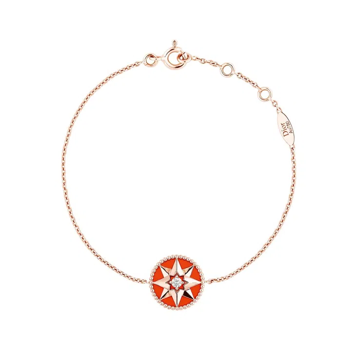 迪奥的Rose des Vents系列珠宝自诞生便掀起一阵风潮,以Christian Dior先生笃信的幸运星与钟爱的玫瑰为灵感,迪奥的玫瑰罗盘是幸运的象征。