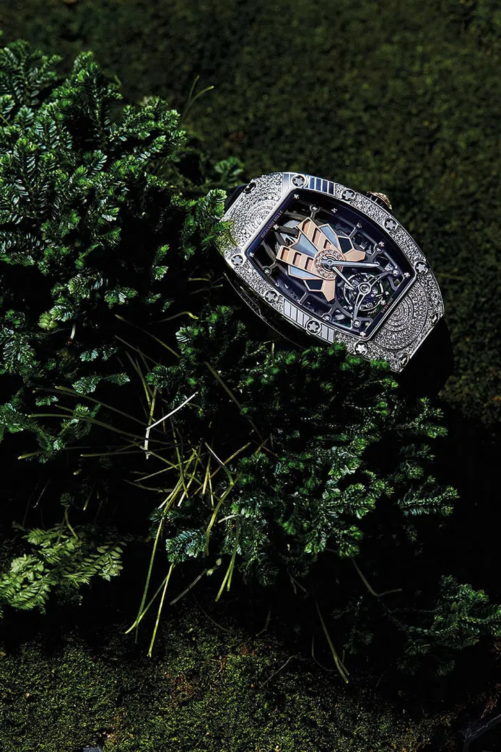精表珠宝2018年圣诞精选镶钻高级腕表送给她钻石本身具有发光性,在经过了日光照射之后,夜晚能够发出淡青色磷光,更加深邃迷人。高级腕表在添饰了钻石之后,不仅在白天呈现晶莹剔透的美态,而到了夜晚,在昏暗月色的映衬之下,又别有一番风韵。钻石的璀璨光泽令腕表成为月夜中最闪耀的那颗星,当晚的绝对主角,也正适合圣诞这个热闹的节日。文 / 李穗婷 / 6 Dec 2018bvlgari, cartier, chanel, chopard, franck muller, harry winston, omega, richard mille, roger dubuis, van cleef & arpelsShare this article1/11Divas’ Dream陀飞轮腕表,手工微绘孔雀表盘,玫瑰金表壳镶嵌钻石,蓝色真皮表带/BVLGARI。2/11Seamaster Aqua Terra 150米腕表34毫米至臻天文台表,Sedna k金表壳 镶嵌钻石搭配sedan k金表链,表盘镶嵌马眼式切割蓝宝石/Omega。3/11Rotonde de Cartier神秘小时腕表,35毫米表款,18K白金镶嵌钻石和石英岩玉/Cartier。4/11RM 71-01 Talisman自动上链女士陀飞轮腕表,红金表盘镶嵌珍珠母贝、玛瑙和钻石/Richard Mille。5/11Lady Nuit des Papillons腕表,33毫米白金表壳镶嵌圆形钻石与圆形蓝宝石/Van Cleef & Arpels。6/11L´Heure du Diamant腕表,玫瑰金表壳28颗圆形明亮式切割钻石,珍珠母贝表盘镶嵌126颗钻石/Chopard。7/11Code Coco腕表,精钢与陶瓷镶嵌钻石/Chanel。8/11Ref. 4909/111G Twenty-4高级珠宝腕表,白金表盘与表链采用“隐形镶嵌”密镶长形钻石、镶嵌明亮式切割钻石与长形切割红宝石/Patek Philippe。9/11Velvet系列“高级定制”三部曲Caviar腕表,玫瑰金镶钻表壳,黑色水晶大理石表带效仿鱼子酱的视觉效果/Roger Dubuis。10/11Premier系列36毫米月相功能腕表,白金表壳镶嵌钻石,蓝色珍珠母贝表盘/Harry Winston。11/11Vanguard系列Yachting Gravity镂空腕表,玫瑰金表壳镶嵌钻石,手工缝制双层真皮与橡胶表带/Franck Muller。bvlgari, cartier, chanel, chopard, franck muller, harry winston, omega, richard mille, roger dubuis, van cleef & arpelsShare this article