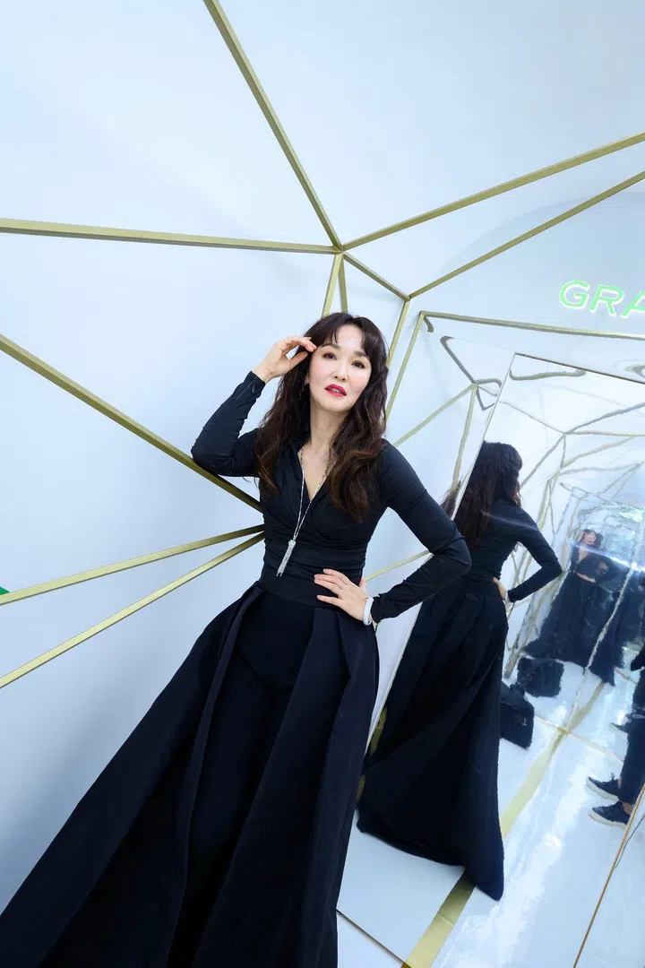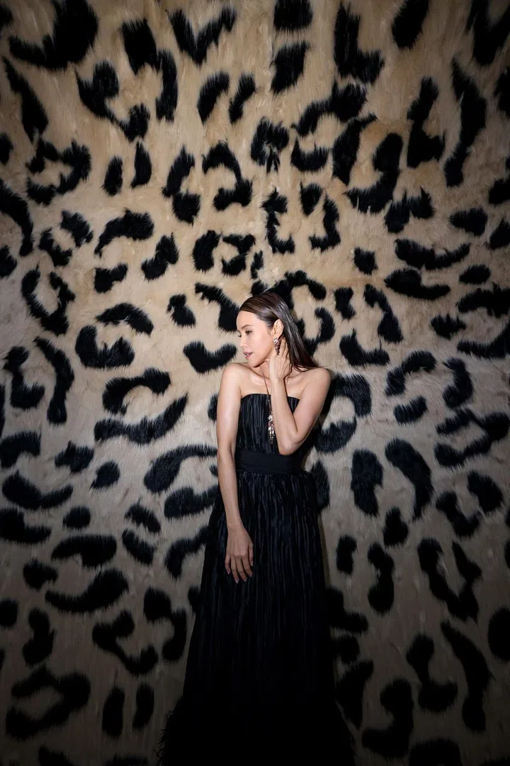 黄暄婷(Chantalle Ng)佩戴Panthère de Cartier黄金镶嵌黑漆、沙弗萊石和缟玛瑙项链,搭配同系列黄金镶嵌祖母绿、缟玛瑙和钻石手镯,以及黄金镶嵌沙弗萊石和缟玛瑙戒指。