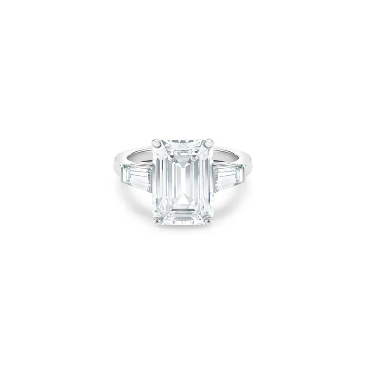 一款拥有历久弥新之美,值得世代珍存的美钻。De Beers的DB Classic戒指中央镶嵌一颗稀世罕有的钻石,以经典的祖母绿形切工和爪镶工艺打造。两颗尖阶梯形切工钻石分别饰于主钻两侧,凸显主钻的璀璨光彩。