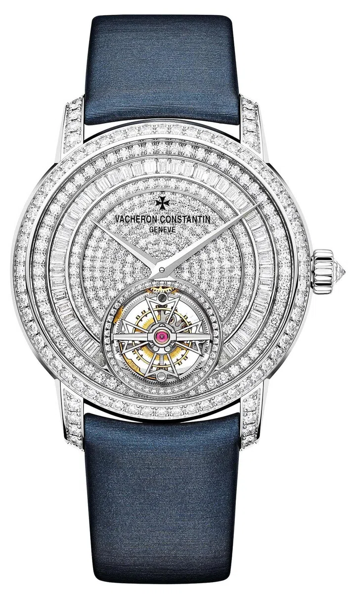 江诗丹顿(Vacheron Constantin)Traditionnelle传袭系列推出两枚女士表款,首次搭载陀飞轮功能。两款腕表的表径均为39毫米,一款采用镶钻粉红金表壳,另一款则于白金表壳上密镶钻石。陀飞轮,这项享有盛誉的钟表复杂功能展现出了柔美气息,呈献给女士兼具精准与格调的时计杰作。