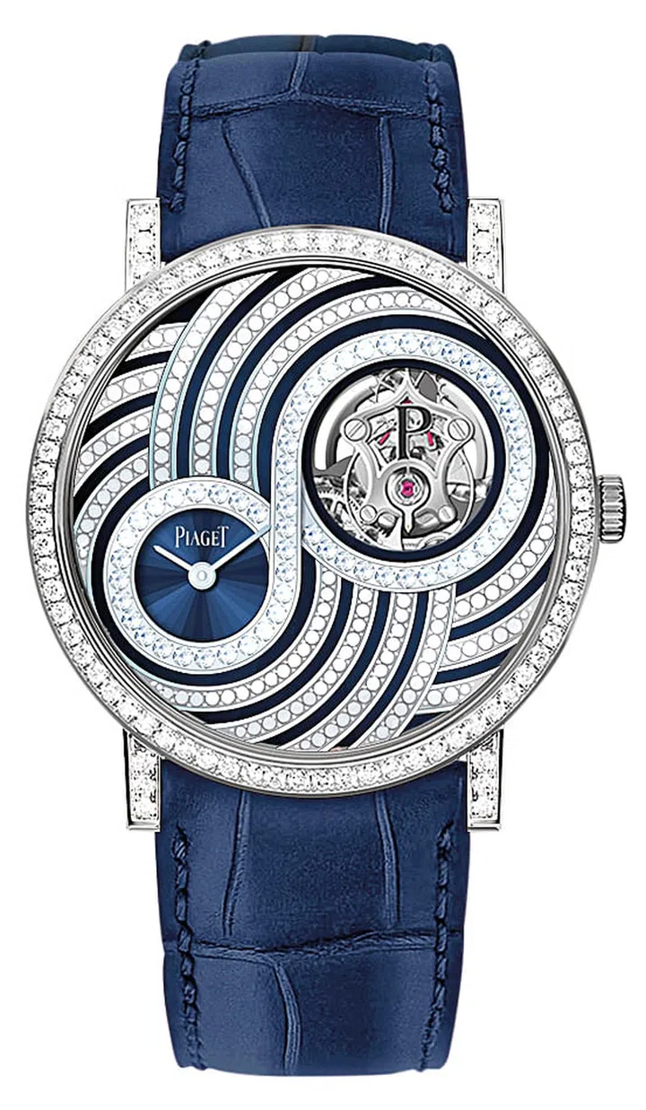 现今几乎等于超薄表代名词的伯爵(Piaget),再推出三款Altiplano至臻超薄浮动式陀飞轮腕表,采用优雅经典的伯爵蓝,不禁令人联想到无垠浩瀚的夜空与神秘深邃的海洋。三款腕表的表盘均饰有钻石镶嵌图形,呈现数字“8”的形状。其陀飞轮框架和偏心式时分显示盘构成了象征繁荣、幸运和欢乐的数字8。此设计由伯爵杰出工坊工匠以手工制成,需要极度精确和专业知识方能将钻石切割出完美形状,再将熠熠生辉的钻石一一镶嵌。