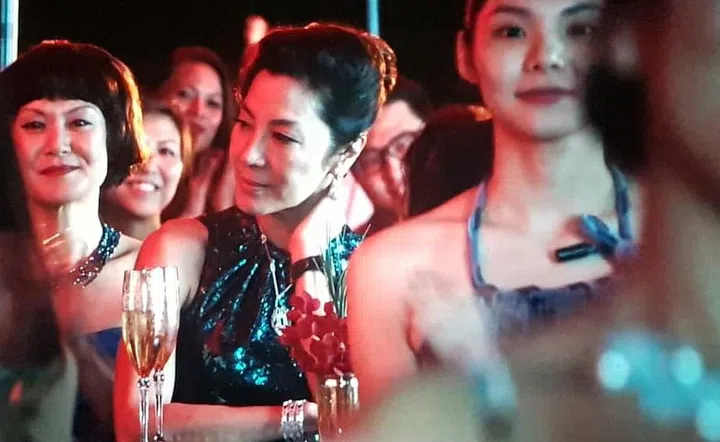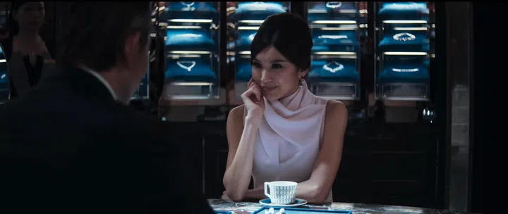 电影里另外一件令人印象非常深刻的珠宝是出现在预告片中的号称价值120万元的珍珠耳环,影片中被Gemma Chan所饰演的Astrid Leong买下,这对珍珠耳环来自瑞士奢华珠宝品牌Mouawad。