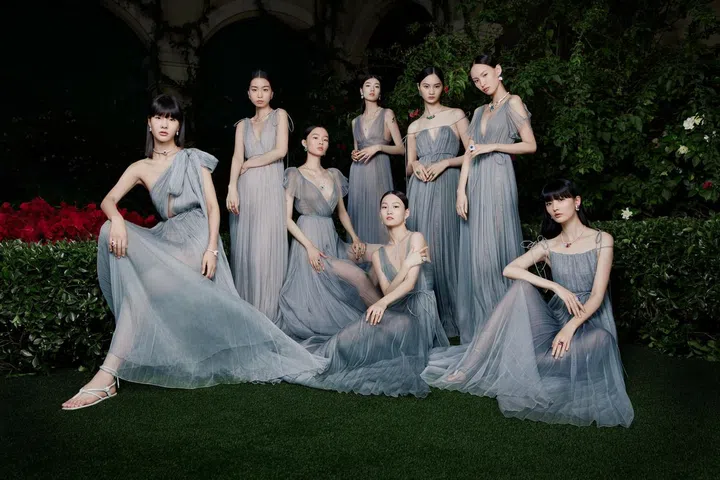 迪奥(Dior)于中国成都盛大发布全新Dior Rose高级珠宝系列。发布晚宴现场被精心打造成一座玫瑰园。光影摇曳间,模特身着迪奥女装创意总监Maria Grazia Chiuri为全新Dior Rose系列特别打造的礼服,佩戴迪奥高级珠宝穿梭其间,高级珠宝于华服之上波光流转,璀璨呼应。