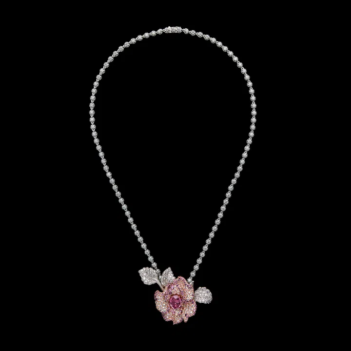 迪奥(Dior)全新Dior Rose高级珠宝系列再次以迪奥先生最爱的玫瑰花为灵感,打造116件珠宝杰作。从古典风格的浪漫玫瑰、 花窗玫瑰、到未来主义玫瑰和抽象高订玫瑰,仿若一座流光溢彩的珍宝玫瑰园。