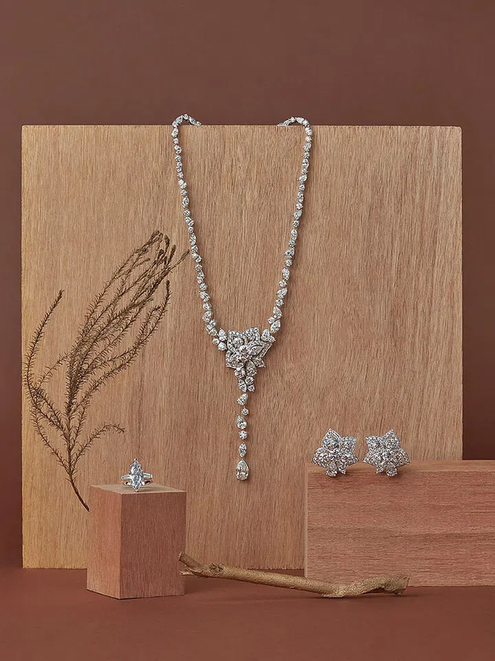 精表珠宝极致优雅格拉夫(GRAFF)结合巧夺天工的镶嵌技术与典雅创新的设计美学,以浪漫诗意谱写艺术风格珠宝,将璀璨钻光尽情展现,凝聚钻石的永恒之美。4 Oct 2019Share this article左至右: 格拉夫5.01克拉马眼形钻石戒指1/4格拉夫Peony系列多形切割钻石项链,钻石共重45.18克拉;格拉夫Peony系列多形切割钻石耳环,钻石共重15.18克拉(售价店洽)。左至右: 格拉夫3.01克拉梨形钻石戒指2/4格拉夫梯形和梨形钻石耳环,钻石共重7.64克拉;格拉夫多形切割钻石手链,钻石共重8.64克拉(售价店洽)。左至右: 格拉夫Inspired by Twombly系列多形切割钻石耳环,钻石共重11.02克拉3/4格拉夫Inspired by Twombly系列多形切割钻石项链,钻石共重20.45克拉;格拉夫Inspired by Twombly系列5.47克拉梨形钻石戒指,钻石共重9.00克拉(售价店洽)。左至右: 格拉夫多形切割钻石神秘腕表,钻石共重35.78克拉4/4格拉夫多形切割钻石耳环,钻石共重14.36克拉;格拉夫3.01克拉祖母绿形切割钻石戒指(售价店洽)。Share this article