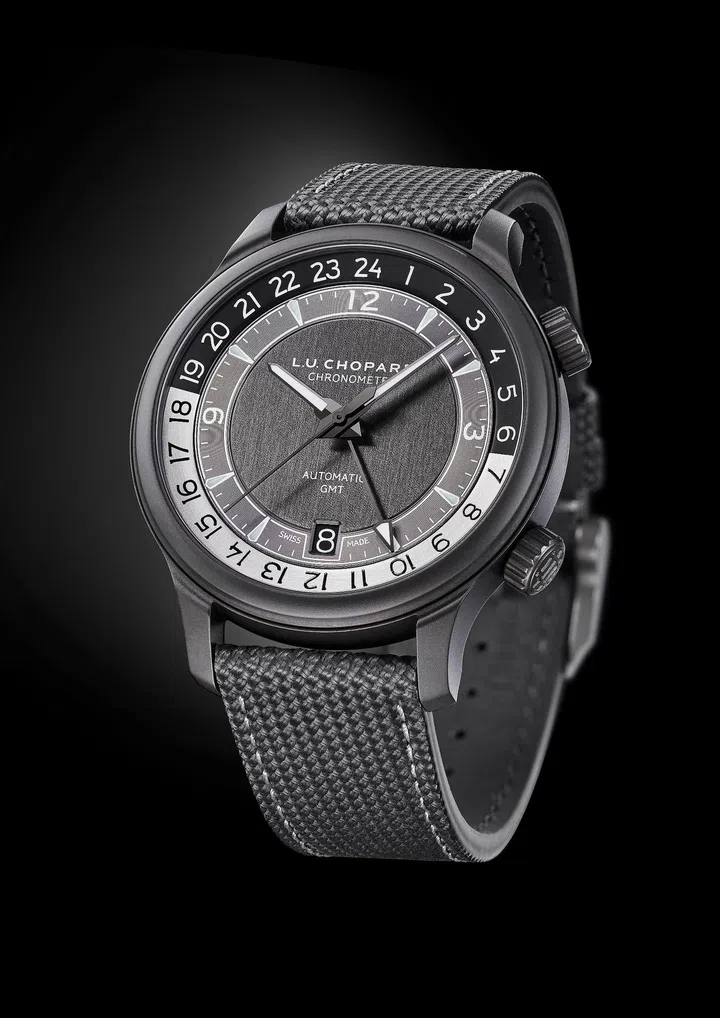 萧邦(Chopard)全新LUC GMT One Black腕表是一款兼具时尚休闲风格的单色双时区旅行时计。轻盈坚固的5级瓷化钛金属表壳和黑灰色设计,使其被视为可以满足新一代绅士生活节奏的理想腕表。LUC Time Traveler One Black率先将这一先进材料用于表壳设计的旅行腕表,限量发行250枚。腕表所搭载的L.U.C 01.10-L机芯具有两地时功能。它由品牌的制表工坊打造,可确保60小时的充足动力储备。