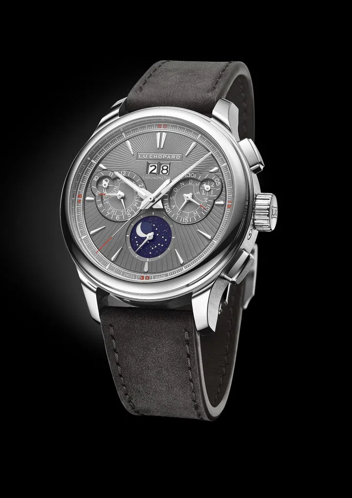 萧邦(Chopard)LUC Perpetual Chrono腕表推出配备轻盈的5级钛金属表壳款式,以适应当代绅士的生活方式。新款腕表限量发行20枚,结合精妙的透视表背工艺美学,以现代风格演绎经典制表工艺。