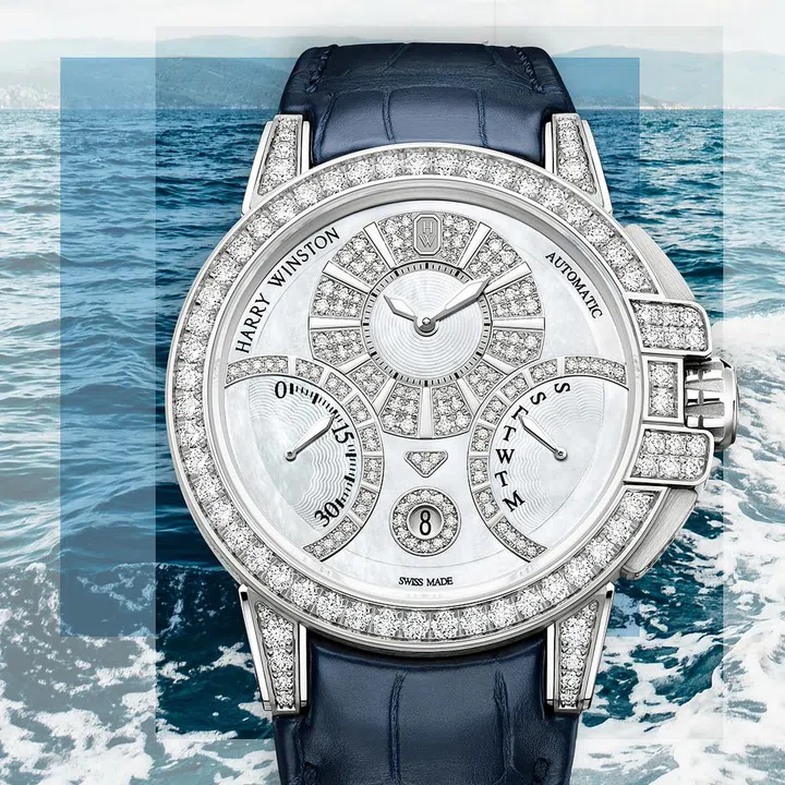 海瑞温斯顿海洋Ocean系列双逆跳功能42毫米自动腕表宛如地平线上的一艘宏伟舰艇,凭借强劲动力和精准性能,在时光海洋上破浪航行。腕表表盘配备精密的双逆跳功能,缀以璀璨钻石,向享有“钻石之王”传奇美誉的海瑞·温斯顿先生致敬。