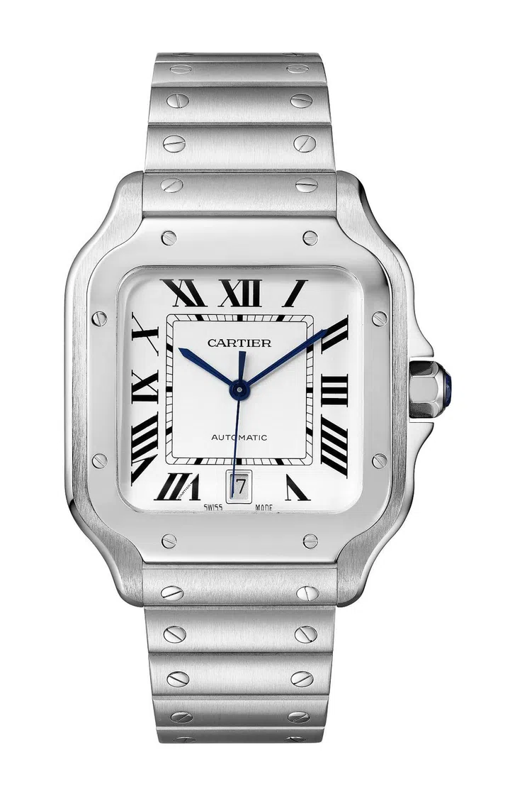 卡地亚(Cartier)Santos de Cartier腕表诞生于1904年,充分彰显造型设计、简约风格、匀称比例和精致细节。在普遍使用圆形怀表的年代,卡地亚首次创作出可佩戴于手腕上的方形腕表。以一贯隐藏于表内的螺丝钉点缀表盘,从此成为该系列的经典美学标志。