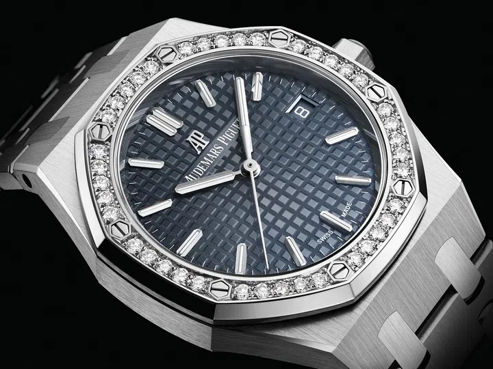 爱彼(Audemars Piguet)为手腕纤细的佩戴者提供更多选择,全新呈献直径34毫米的皇家橡树系列自动上链腕表。这一全新尺寸的四款精钢或18K玫瑰金表款再次扩大皇家橡树系列的现有阵容,使皇家橡树系列自动上链表款的选择更加丰富。四款全新表款中,两款采用精钢表壳,搭配银色或蓝灰色“Grande Tapisserie”大型格纹表盘。 此外,直径34毫米的全新表款还提供18K玫瑰金款式,搭配银色“Grande Tapisserie”大型格纹表盘以及镶钻表圈。 第四款则是精致设计的双色腕表,精钢表壳与18K玫瑰金表圈交相辉映,18K玫瑰金表带链节堪称精钢表带的点睛之笔,搭配银色“Grande Tapisserie”大型格纹表盘。