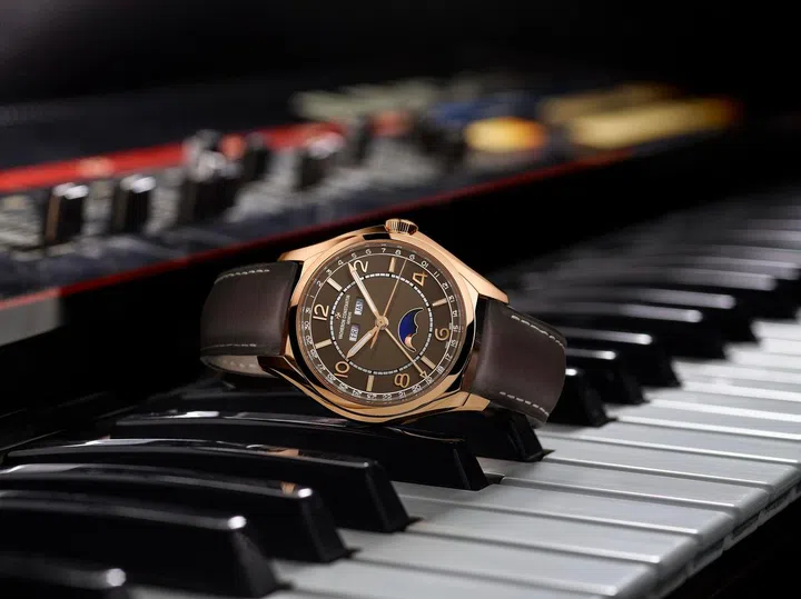 江诗丹顿(Vacheron Constantin)Fiftysix伍陆之型系列以江诗丹顿1956年推出的经典佳作为灵感,在原作的基础上注入现代设计。系列亮点之一全日历腕表饰有乳光旭日纹装饰的单色表盘彰显了低调优雅的气质,而其背后则蕴藏了备受时计爱好者和收藏家推崇的复杂功能。2460 QCL/1自动上链机芯为星期、日历、月份和月相显示提供了充足动力,22K镂空摆陀上更饰有马耳他十字造型装饰。与3年就需调校一次的普通月相对比,其更为精密的设计结构和高精准度,意味着其精密月相显示每122年才需调校一次。