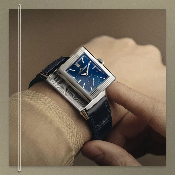 积家(Jaeger-LeCoultre)Reverso Tribute Small Seconds 翻转系列小秒针腕表精钢款的每一处细节均充满体现装饰艺术风格。帶深沈色彩的表盘与阿根廷马球靴品牌Casa Fagliano手工制作的皮革表带,展現迷人的独特个性。