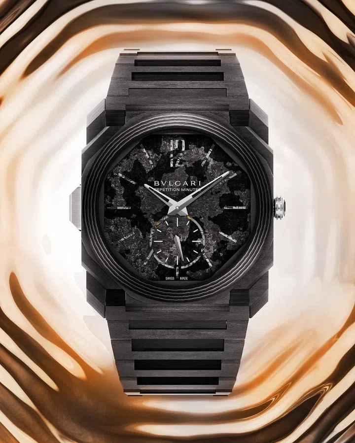 堪称宝格丽有史以来最复杂表款的Octo Roma Grande Sonnerie大自鸣腕表,搭载三问功能。在大自鸣模式下,自动报时与报刻,并在每个整点鸣响相应时数,此外也可按需求报时、报刻及报分,由四个音锤轮番敲响指挥家Lorenzo Viotti所创作的曲调。Octo Roma Carillon Tourbillon钟乐报时陀飞轮腕表,搭载改良版的BVL428钟乐报时机芯,以三音报时、报刻与报分。Octo Finissimo Minute Repeater Carbon超薄三问碳薄层腕表结合独特Octo Finissimo设计与极度复杂的三问机芯,可依需求报时、报刻及报分。