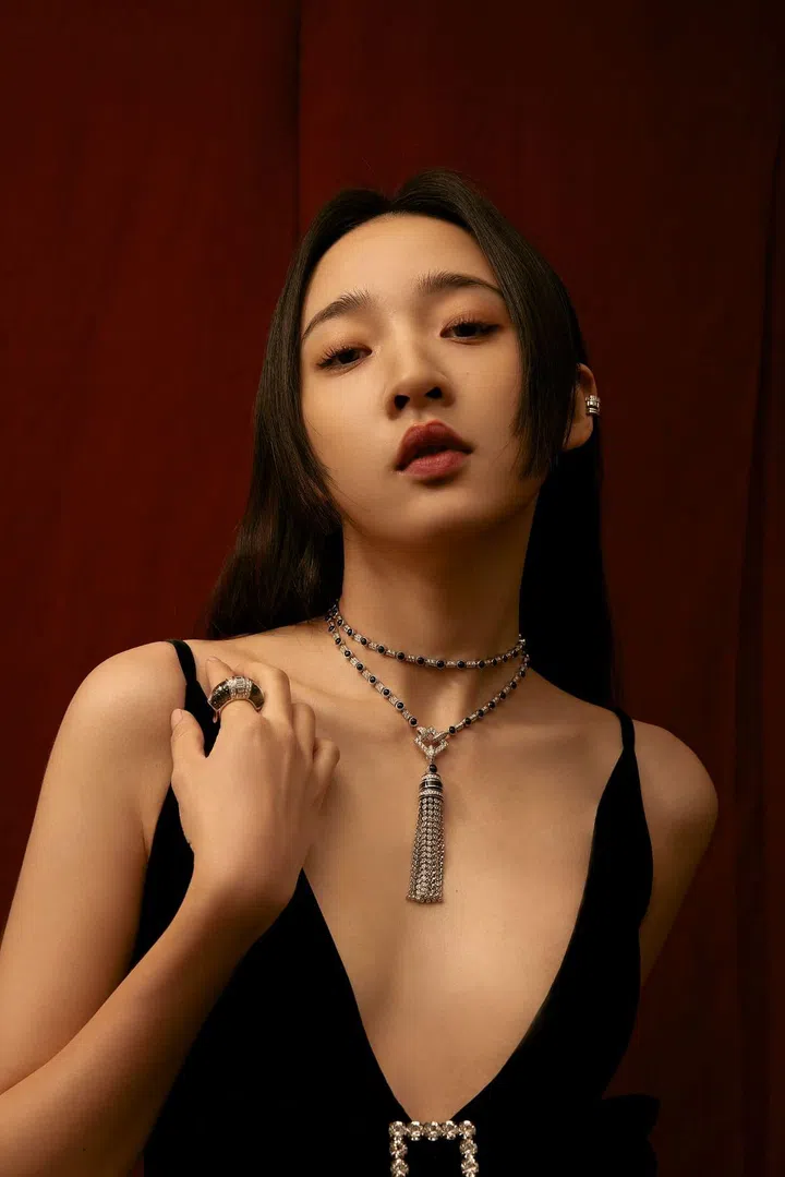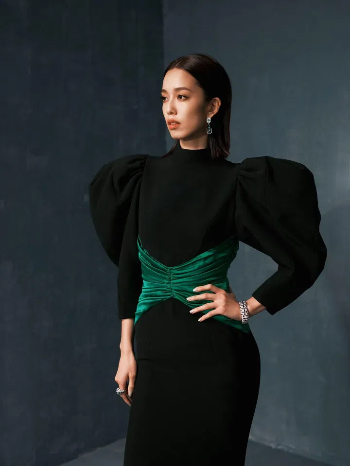 凭电影《青春弑恋》入围最佳女主角的陈庭妮,以一袭黑色复古礼服亮相红地毯,搭配的卡地亚(Cartier)Sixième Sens高级珠宝系列Percussion耳环、[Sur]naturel高级珠宝系列Felin手环和戒指让造型更加完美。