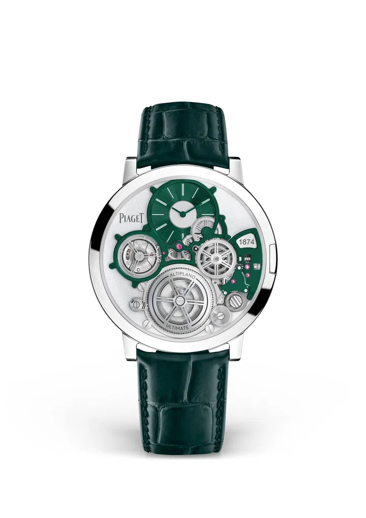 Altiplano Ultimate Concept超薄腕表不断挑战人类制表的超薄极限,厚度仅两毫米。从2018年推出原型表款之后,2020年更夺下GPHG金指标奖。而2021年,伯爵(Piaget)更进一步推出Altiplano Ultimate Concept仙子坡特别版腕表,表桥、螺丝、指标、表盘与表带均为墨绿色,以此向品牌1874年于瑞士汝拉地区仙子坡(La Cote-aux-Fees)创立的同名制表工坊致敬。