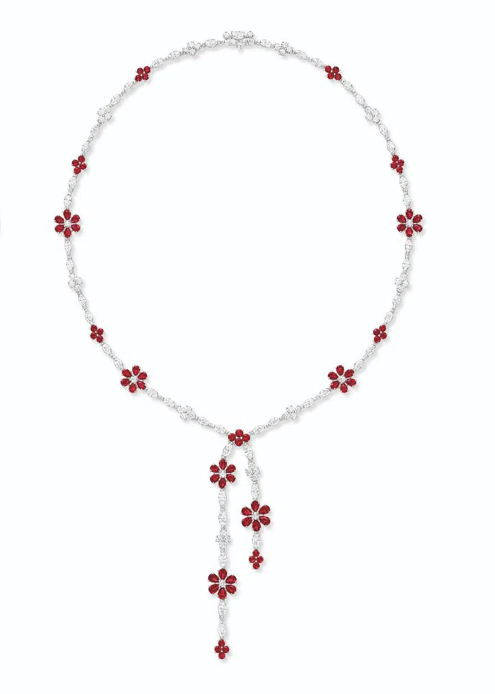 春暖花开之时,迎接美好一年,到拥有欧洲大陆最美花海的荷兰,看遍繁花锦簇。Forget-Me-Not系列红宝石和钻石Lariat项链,灵感源自于勿忘我,78颗水滴形和圆形明亮式切工红宝石,轻盈灵动,洋溢佳节季的喜气,同时散发纯澈光彩,成为目光焦点。海瑞温斯顿巧妙地通过精美雅致的项链,赞颂大自然盛景,以绝美的对称设计,描绘花朵盛放的美态,赠予挚爱之人,将世间美好景色凝聚身前。