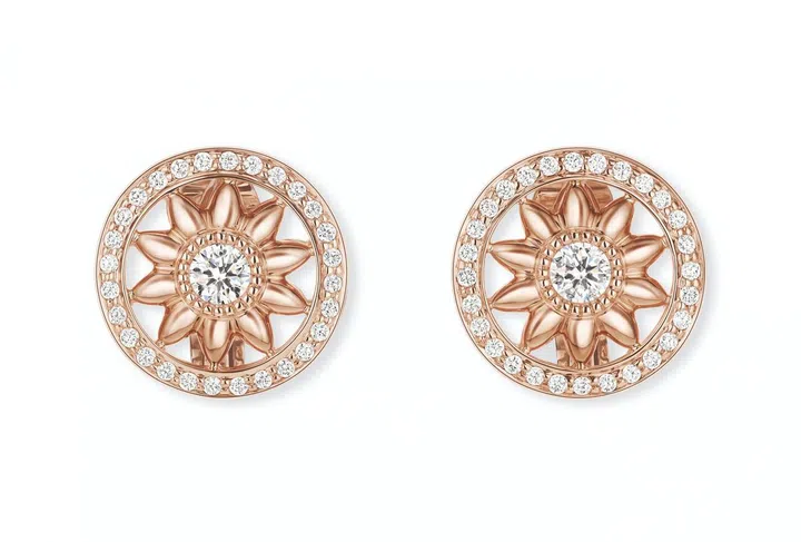 摩登时尚的Winston Gates珠宝系列充满了现代风格,涵盖了钻戒、手链、项链和耳环,外观设计仿佛一个永恒闪耀的小太阳,送给你心中的她/他,打开幸福大门,照亮人生每个明媚的时刻。充满幸福意寓的环形花式设计,代表着乐观、机遇、希望和幸运,灵感来自海瑞温斯顿位于纽约第五大道718号旗舰店入口的标志装饰。备有铂金、黄18K金或玫瑰18K金不同材质选择,中央缀以圆形明亮式切工主钻,环绕着10瓣精美的花瓣,华美的金属光泽与闪耀钻石相互辉映,让人举手投足间绽放朝气华彩。