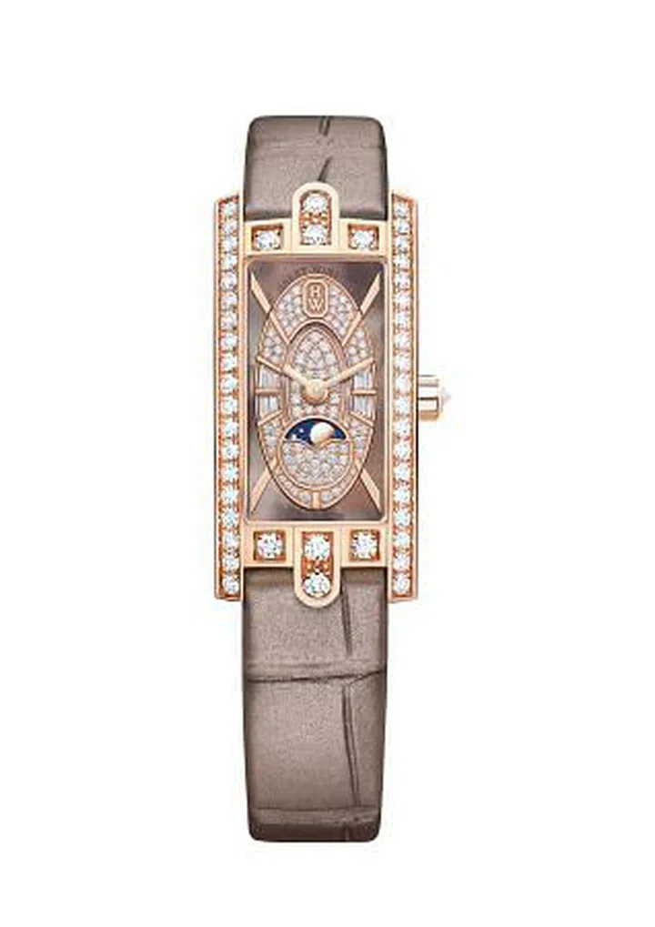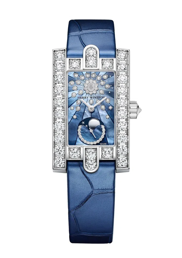 为庆祝第五大道Avenue腕表系列面世20周年,海瑞温斯顿(Harry Winston)推出了重新诠释的数款经典之作,包括第五大道Avenue C系列迷你月相功能腕表。大胆的几何图形搭配海瑞温斯顿标志性的钻石镶嵌为这款经典的腕表添姿增彩,绽放夺目光华。白 18K 金搭配蓝色珍珠母贝表盘或18K玫瑰金搭配哈瓦那棕色珍珠母贝表盘,繁复的月相功能带有催眠的效果,为腕表增添极致的女性魅力。