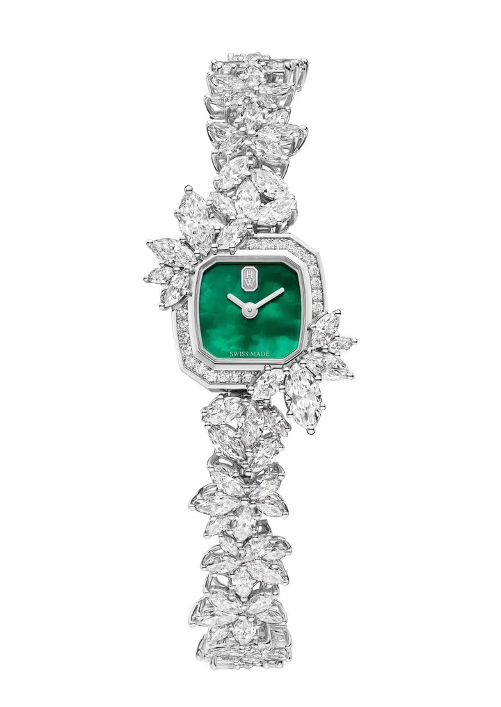 从自然万象中汲取灵感,配以大自然最为珍贵的馈赠——钻石,成就两款海瑞温斯顿(Harry Winston)高级珠宝腕表系列的全新之作。全新演绎海瑞温斯顿标志性的品牌标识,Precious Emerald腕表大胆采用马眼形切工钻石,镶嵌于铂金底座,成为红毯上光芒四射的主角。